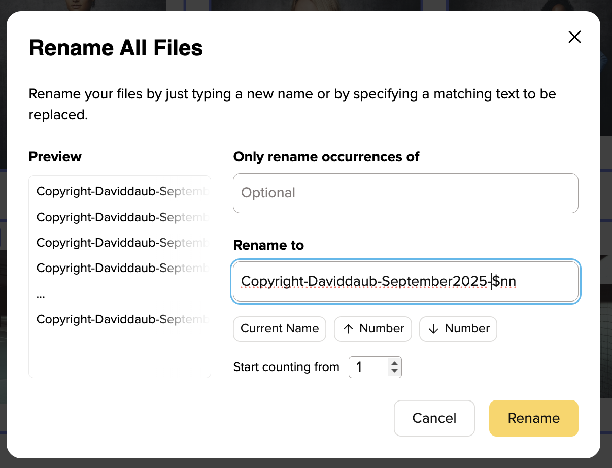 Renaming each individual file in a big gallery is a bit of a hassle? No worries, we've got you covered: